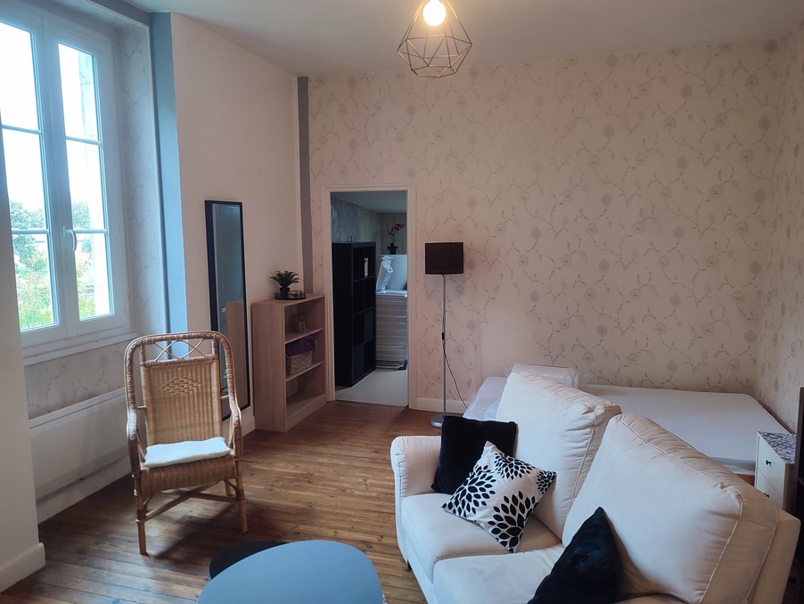 A moins de 5 minutes de Jonzac, appartement de type T1 meublé au 1er étage comprenant : pièce avec vivre avec cuisine séparée, salle de bains, wc. Espace de jardin en rez-de-chaussée ainsi qu'une aire de stationnement. Compris dans les charges (eau, électricité dont chauffage et taxe ordures ménagères).